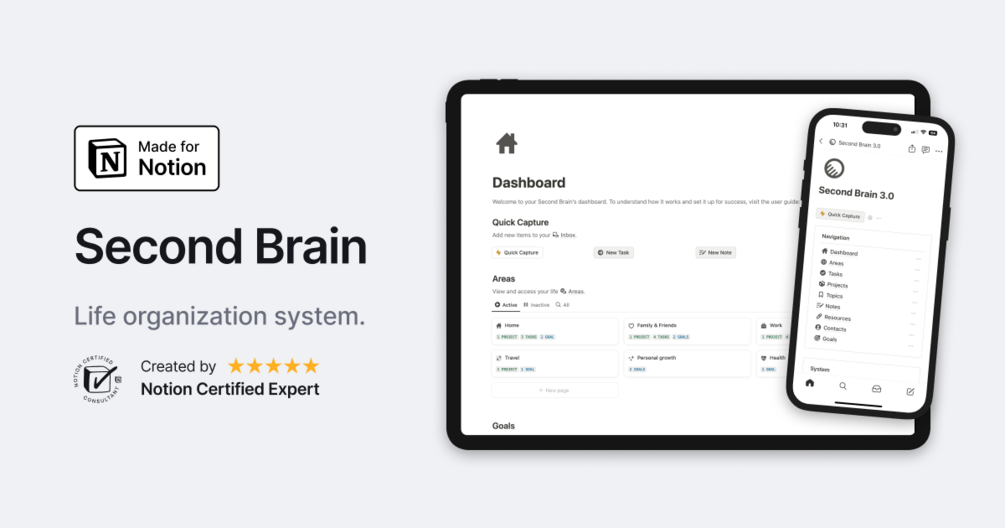 That's why I created this Notion Second Brain 3.0. It's a template based on my personal organization system that will help you feel more in control of every aspect of your life.
