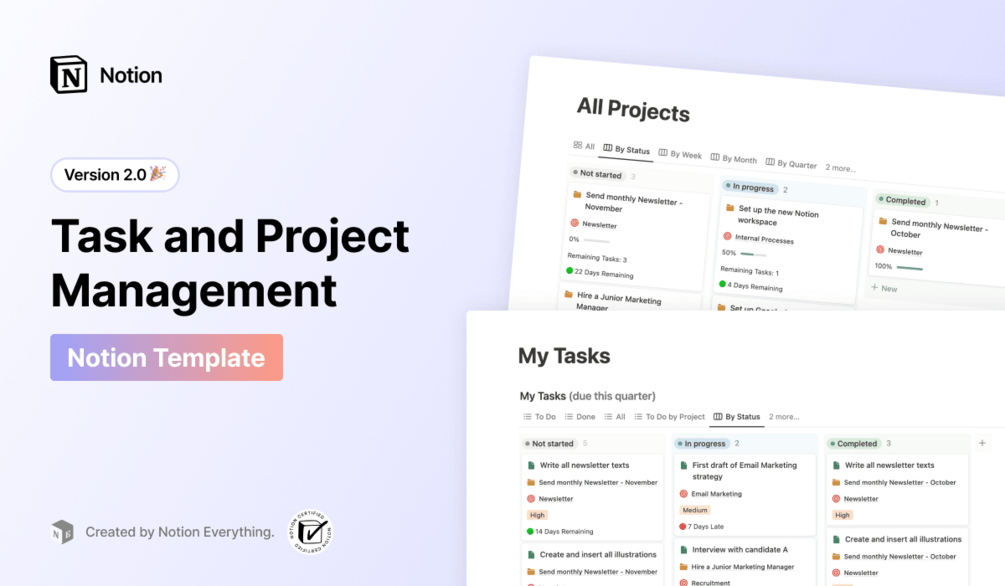 This advanced Task and Project Management Notion Template will allow you to use Notion as a real task and project management app.