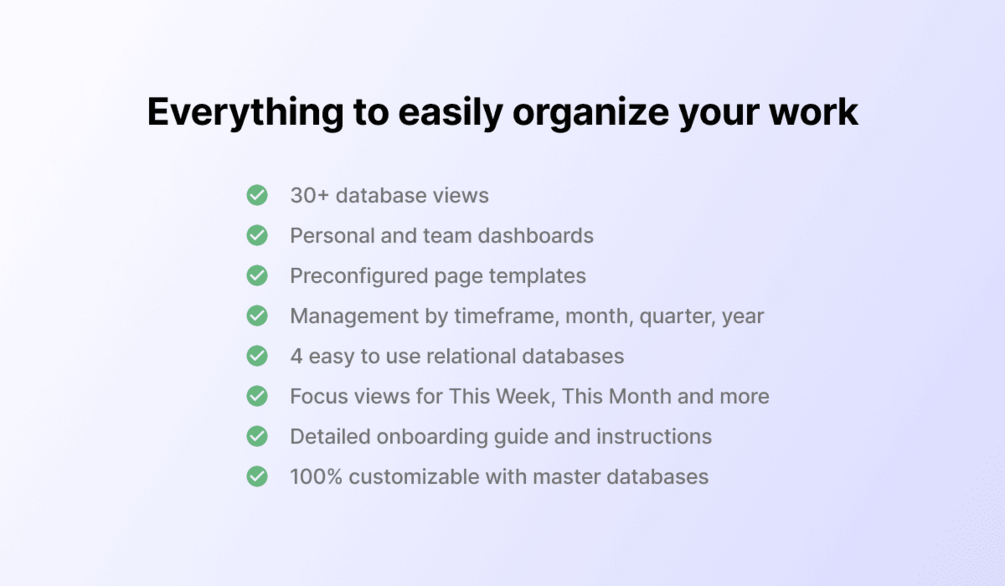 To save you hours of work trying to set up your own system, we built this ready-to-use Project Management Notion Template with clear guidelines and instructions.